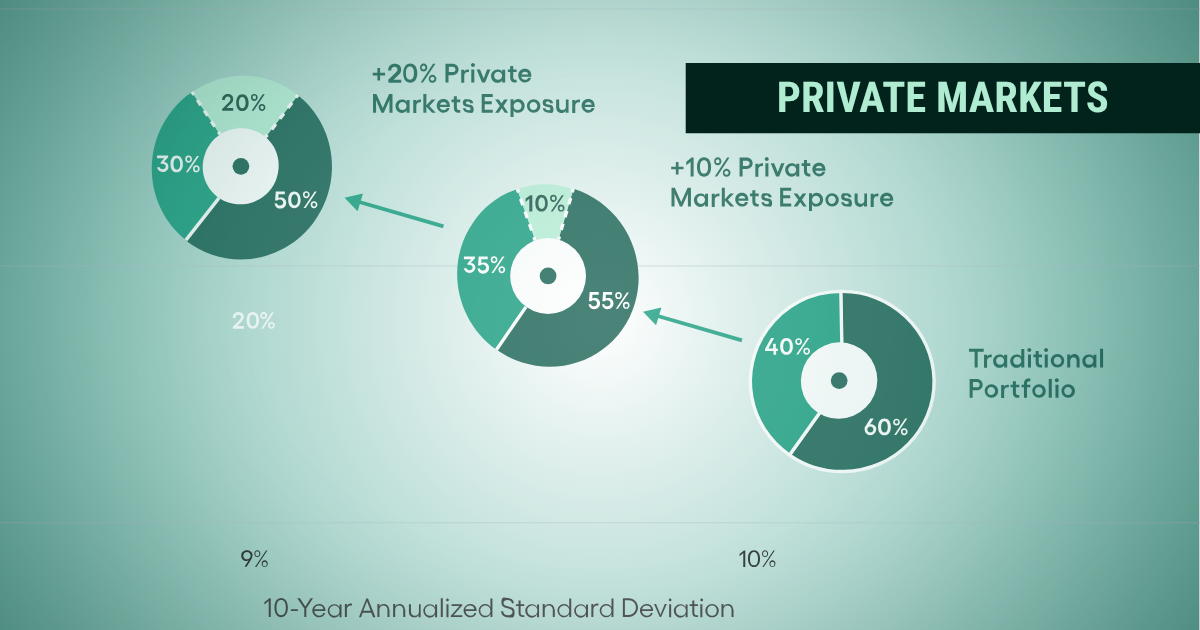 Increasing allocations to private market solutions may help generate higher risk-adjusted returns over the long term.